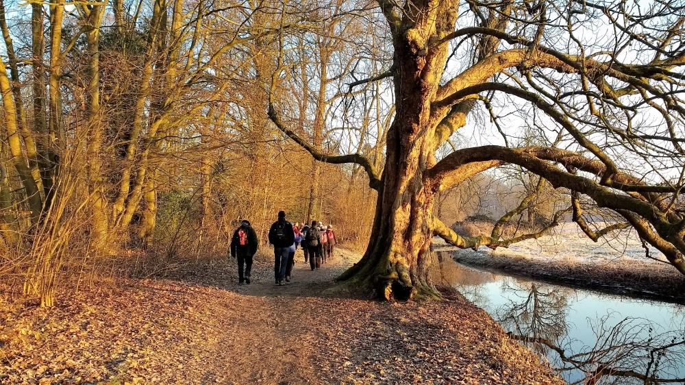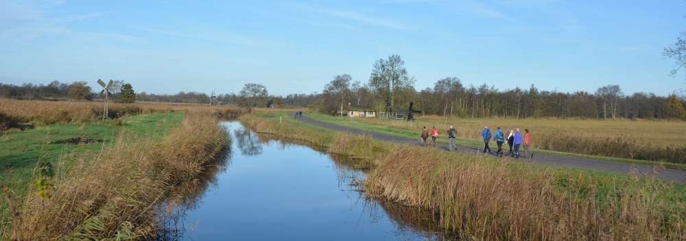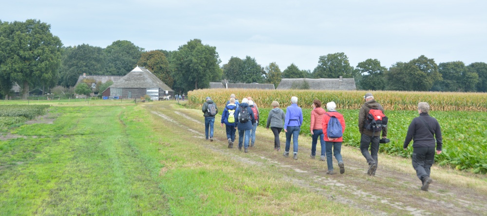 Het waait nog flink op deze vroege zondagmorgen, maar het zonnetje laat zich zien en het is fris. Dus: ideaal wandelweer. De groep van veertien wandelaars ( helaas nogal wat afmeldingen) is er helemaal klaar voor. Startpunt is de parkeerplaats…