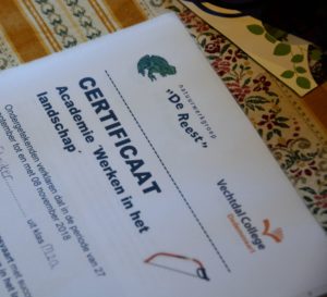 twee poelen op Rabbinge. De vennetjes kregen niet veel licht meer en de opslag van wilg en els werd weggehaald. De kikkers en salamanders zullen er blij mee zijn. Op de vijfde middag werd een deel van een houtsingel bij Den Huizen afgezet. Op donderdag 8 november 2018 kregen de eerste- en tweedejaarsleerlingen van ons een certificaat. In De Wheem werd het project in een gezellige sfeer afgesloten.