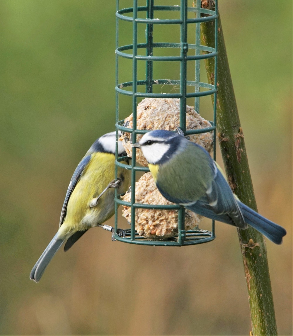Pimpelmezen hangen veel buitelend aan de takken om voedsel te zoeken, ze zijn heel acrobatisch en licht van gewicht. Daardoor kunnen ze op plekken komen die voor andere vogels onbereikbaar zijn. In de winter zijn ze dol op vetbollen en ze kunnen dan slecht delen met een ander. De Pimpelmees heeft namelijk een pittig karakter, ze zijn enorm energiek en vechten zich dood als het moet. Met soortgenoten gaan ze de strijd aan maar ook met vogels die groter zijn. Pimpelmezen zie je niet vaak op de grond foerageren. Wel nemen ze vaak en graag een bad.
