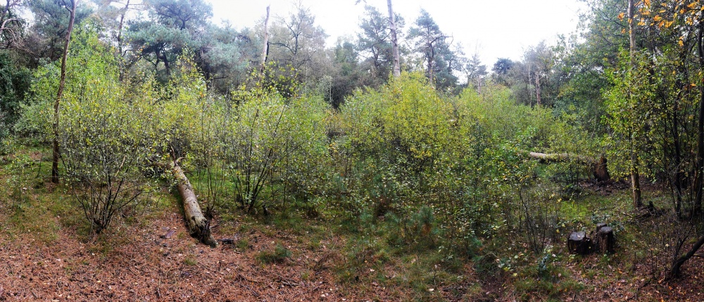 In oktober 2013 begonnen we in opdracht van Landschap Overijssel met het maken van twee “verjongingspekken” in de Haardennen. Van oorsprong was dit 70 ha grote bos een monocultuur van grove dennen, ooit geplant op een plek met veentjes, heide en stuifzand. De boeren van toen zagen er blijkbaar geen heil in om er vruchtbaar akkerland van te maken. En hout kon altijd van pas komen. Op een kaart uit 1815 op de website www.topotijdreis.nl bestaat de plek nog uit woeste gronden. Pas rond 1900 is er duidelijk sprake van een bos. Van een dennenbos is nu al lang geen sprake meer. Natuurlijk staan er nog dennen, hele oude soms, maar inmiddels heeft het bos zich ontwikkeld tot een mooi gemengd bos met eik, berk en grove den als dominante boomsoorten.