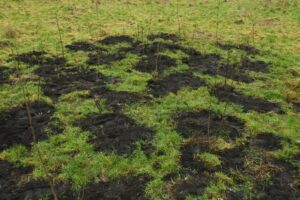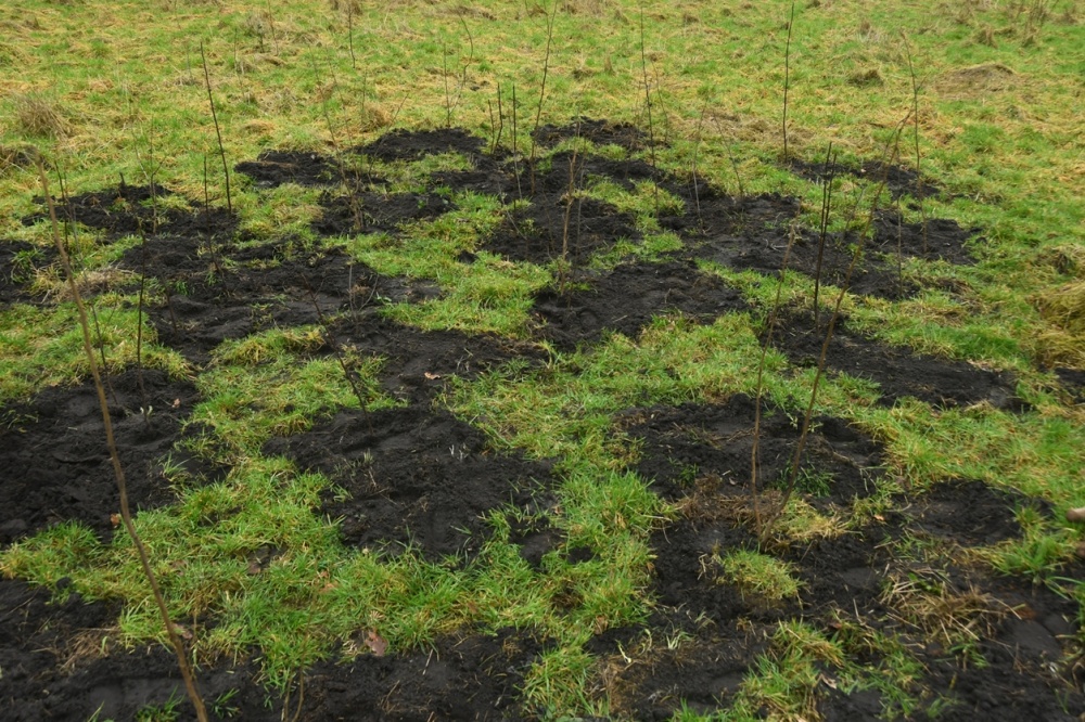 In de nazomer had onze werkgroep al vijftien plekken voor vogelbosjes gecreëerd. Het lange gras werd met de zeis gemaaid en op elke plek werden rond de twintig