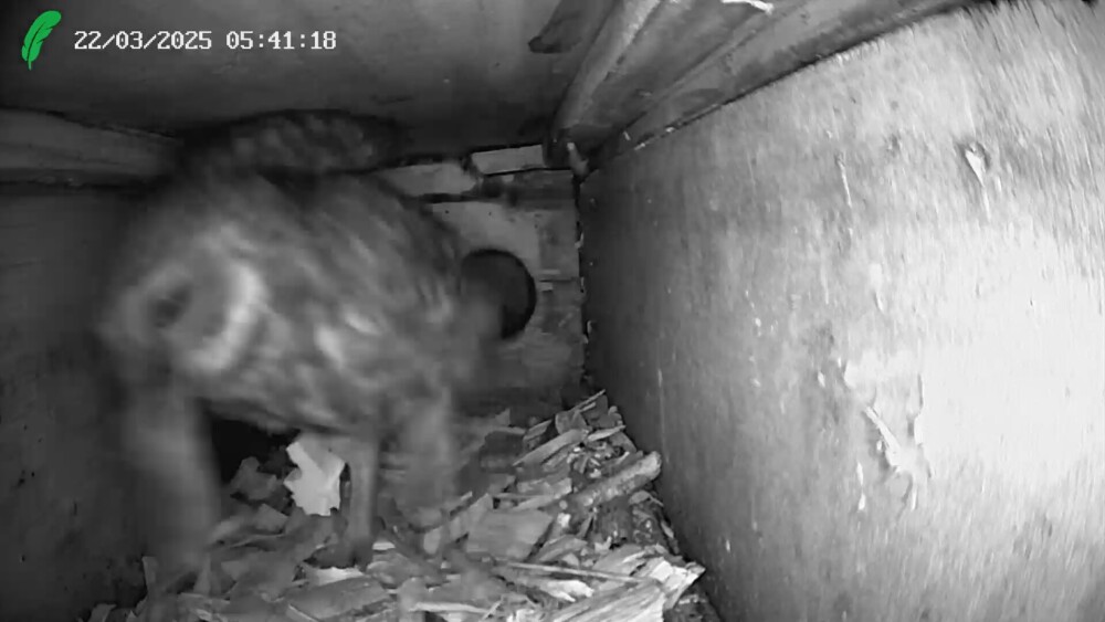 De steenuil in de kast is ongeringd. Onbekend is of het een mannetje of vrouwtje is. Op de dag van camera installatie zat de steenuil in hetzelfde hoekje van de kast als waar we hem in de nacontrole in oktober 2024 en bij de schoonmaak in november 2024 aantroffen. Kennelijk een favoriet plekje. Die favoriete plek bleek ook uit de camerabeelden in de waarnemingsmaanden.