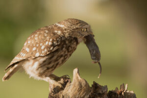 Er is in de waarnemingsperiode 22 maart tot 17 april 6x een prooi in de kast gebracht. Te zien was 3x een muis, 2x een nachtvlinder en 1x een ander niet geïdentificeerd insect. Deze prooien werden direct opgegeten. Dit past bij onze reguliere controles in 2024, waar de kast altijd schoon, zonder prooien of prooiresten, was.