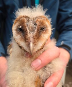 Vanaf mei probeer ik alle eigenaren te bellen of ze al activiteit in of rondom de kast bemerken. Een aantal eigenaren kijken altijd zelf in de kast. Met behulp van Max, Eline en Benny controleren we de rest van de kasten of ze bezet zijn. Aan de hand van de grootte van de jongen kunnen we inschatten wanneer ze groot genoeg zijn om te ringen. Ook is het van belang dat de jongen niet te groot zijn omdat ze dan uit de kast vliegen en om onrust te voorkomen. De jongen stoppen we in een emmer aangezien dit vriendelijker is voor de vogels dan in een zak. Dit jaar heeft Danny alle jongen geringd aangezien Judith een blessure aan haar hand had. Danny is inmiddels bevoegd ringer na de opleiding genoten te hebben genoten bij Judith. Vanaf dit jaar proberen we ook met een lange stok de vliegopening dicht te zetten zodat we ook de volwassen uilen kunnen vangen en ringen. Uiteindelijk is er 1 volwassen vogel geringd en een andere vogel was al geringd in 2021 in Bergentheim.