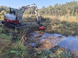 In de Haardennen richt Landschap Overijssel zich op het herstel van oude veenputten en het gefaseerd laten verdwijnen van naaldbomen. Vanaf eind september wordt gestart met het ringen van bomen, waardoor ze afsterven. Ook hier wordt een verouderde sloot gedempt, zodat water in het gebied blijft in plaats van dat het wegstroomt. In het verleden heeft onze zaterdagwerkgroep landschapsbeheer met enige regelmatig oude en vervallen veenputten in de Haardennen hersteld en omliggende beplanting weggehaald. Dit gaat dus nu op grote schaal gebeuren. We zijn benieuwd naar het resultaat.