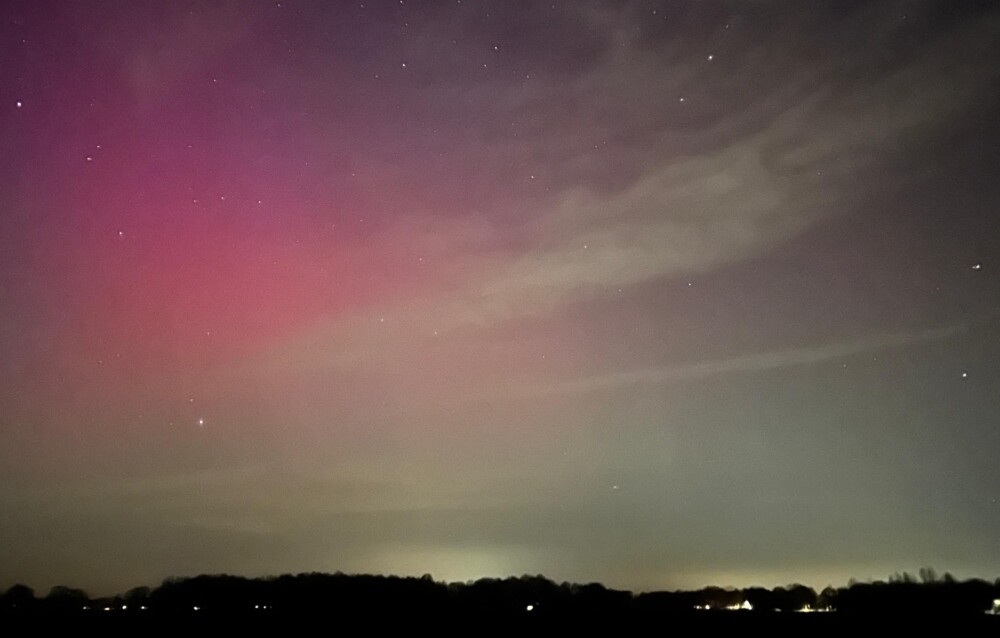 Het tweede zoekspoor is lastig. Op de avond na het mooie noorderlicht, zijn we op verschillende locaties gaan luisteren. Zowel in de buurt van de opgehangen nestkasten, als in een nieuw potentieel goed gebied. Helaas kwam er nergens een reactie op de afgespeelde baltsroep van de steenuil. Wel zagen we heel even een begin van het noorderlicht. Het doofde binnen 2 minuten uit, maar met de telefoon hebben we nog net een foto kunnen maken.
