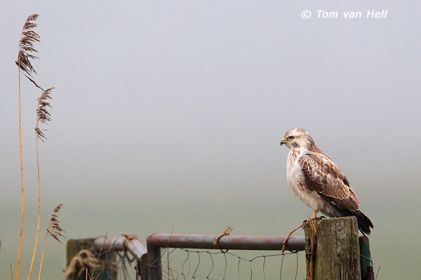 te nemen. Wat opvalt zijn de composities waar zo goed over is nagedacht. Geen foto van een buizerd alleen, nee de buizerd zit op een paal naast een roestig hek. Links steken een paar rietpluimen af tegen een lichte en vage achtergrond. In een volgende dia vliegt de buizerd op. Aandacht voor detail is er ook. Met enige regelmaat wijst Tom op kleine schakeringen in het verenkleed van vogels als fazant en krakeend. Naast vogels komen ook zoogdieren als ree en haas langs. Aan het eind van de avond krijgt de fotograaf een applaus waaruit af te leiden is, dat de zaal een prachtige avond heeft gehad.