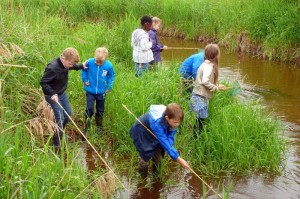 waterdiertjes en kriebelbeestjes. De kinderen werden in vier groepen verdeeld. In twee groepen van zeven gingen ze in het water van de Reest, gewapend met visnetjes, opzoek naar waterdiertjes. Ze vonden schaatsenrijdertjes, kikkervisjes, schrijvertjes, ja zelfs een echte waterschorpioen! Natuurlijk kregen een paar stoere boys al snel een paar natte voeten. Langs het speelpad achter De Wheem vonden de kids mieren, pissebedden, larven, rupsen, houtwormen en nog veel meer kriebelspul. Halverwege de middag werd er gewisseld en om vier uur was er voor iedereen ranja met een koekje. Af en toe regende het deze middag. Dat was wel jammer, maar het werd toch een leuke en leerzame middag. (foto’s : Bertha Compagner)