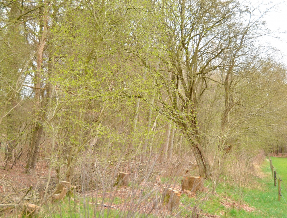 pas veel later hout te leveren voor gebinten. Een houtwal diende ook vaak als veekering. Het vee werd tegengehouden door struiken als meidoorn en sleedoorn . De vlijmscherpe doorns van deze struiken en de wirwar van takken waren voldoende om nieuwsgierige koeien of schapen tegen te houden. In het Reestdal is de meidoorn dan ook een karakteristieke struik. Tijdens de werkzaamheden kreeg de werkgroep van landschap Overijssel de opdracht om in de houtwal de meidoorns te laten staan. Nu het voorjaar aanstaande is lopen de knoppen van de meidoorn weer uit. De struiken staan er nog een beetje eenzaam bij. Over een paar jaar is dat anders. Dan vormen ze weer een geheel met snel groeiende elzen, vlieren en eiken.