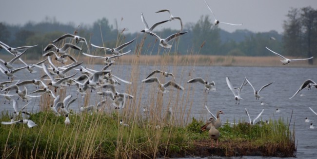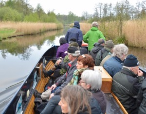 De groep genoot zichtbaar van de stilte en het prachtige landschap. En dat allemaal door de mens gemaakt. Onderweg bleek maar al te vaak, dat het gebied open water en graslanden houdt dankzij activiteiten van natuurbeheerders en rietsnijders. Zonder ingrijpen verlandt het water en verandert het open landschap in korte tijd in een moerasbos.