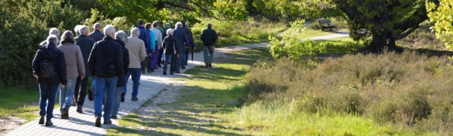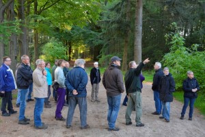 “Landschap Overijssel heeft hier op De Lemelerberg al erg veel werk verzet en we zijn nog niet klaar” .Vierentwintig deelnemers kijken om zich heen en luisteren vol belangstelling naar Hans Dijkstra , districtbeheerder bij Landschap Overijssel. Hans is blij, dat hij namens LO deze rondleiding voor leden van de nwg mag doen en hij is trots op wat hij laat zien. Vanaf de parkeerplaats bij het restaurant bovenop de Lemelerberg lopen de deelnemers door Park 1813. Hans heeft veel te vertellen. Het park is in 1913 aangelegd ter ere van het honderd jarig bestaan van het Koninkrijk der Nederlanden. De aanleg van het park was een