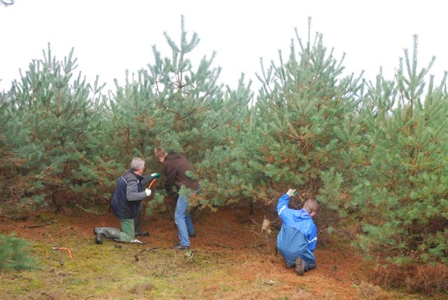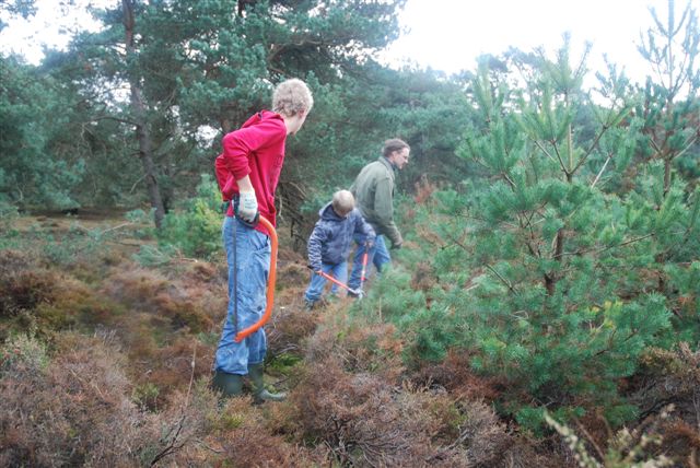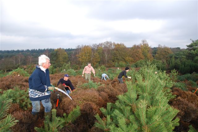 Ook dit jaar heeft de Natuurwerkgroep mee gedaan aan de jaarlijkse natuurwerkdag. De groep bestond uit 7 leden van de natuurwerkgroep en 5 leerlingen van het voortgezet onderwijs ivm het project maatschappelijke stage. De werklocatie was de zuidhelling van de Lemelerberg, in eigendom van het Landschap Overijssel. Ter plekke werden we ontvangen door de beheerder van het terrein Hans Dijkstra met koffie en cake. Na uitleg over de te verrichten werkzaamheden werden we, gewapend met takkenscharen en zagen, naar de werkplek geleid. Het doel was om de heide te zuiveren/schonen van opslag van de grove den. Er waren flinke bomen bij dus moest er ook flink gezaagd worden. De stagieres hebben hierin een groot aandeel gehad. Tijdens de werkzaanheden werden enkele houtsnippen, als doortrekkers uit het noorden waargenomen. Als traditie bestond de lunch uit erwtensoep en roggebrood met spek of vegetarische soep Na de lunch hebben we nog goed een half uur doorgewerkt. Bij de afsluiting om 14.00 uur bedankte Hans ons voor de inzet en gaf ons een presentje mee in de vorm van een kunststof fietszadelhoes. Het was een goede werkdag op een mooie locatie.