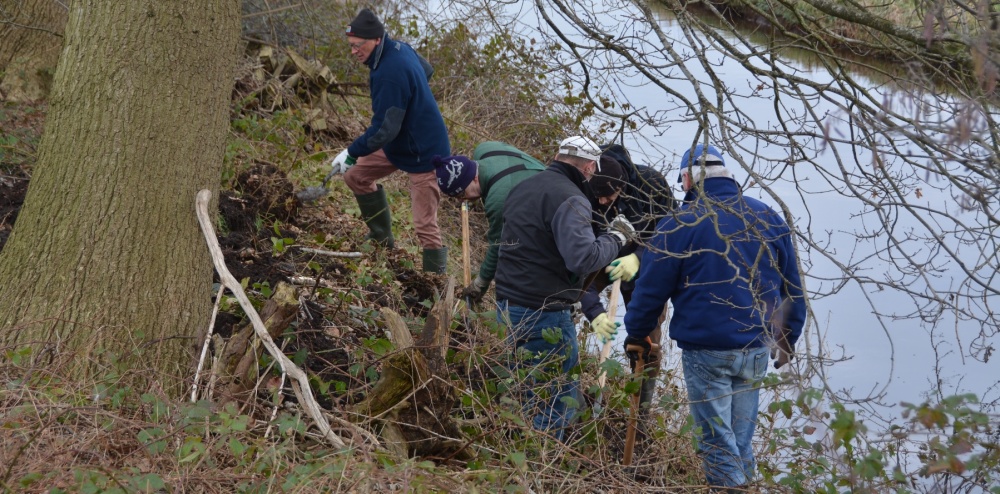 Het afsteken van de oever was niet zo’n grote klus. Vrijwilligers van de kleine werkgroep landschapsbeheer waren er zo mee klaar. De aanleg van de wand gebeurde in het kader van het 16-jarig bestaan van Waterschap Reest & Wieden en stond onder leiding van Het initiatief ontstond binnen deze organisatie om een blijvende herinnering in het gebied achter te laten. Het idee is om dit in te vullen door het realiseren van 16 ijsvogelwanden, het symbool van het waterschap, binnen het beheersgebied. Landschapsbeheer Drenthe is gevraagd om hierbij hun expertise in te zetten.