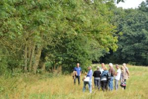 “We gaan een wandeling maken en onderweg kijken we naar de planten die we tegenkomen. Een heleboel producten uit de natuur om ons heen zijn eetbaar, maar je kunt ze ook gebruiken voor andere doeleinden. “ Jacqueline van Dooren is natuurgids bij Landschap Overijssel ( sinds kort gediplomeerd). Haar specialiteit: de eetbare natuur op een enthousiaste en deskundige manier promoten. Gewapend met rieten mandje en geruite theedoek loopt Jacqueline richting het Kerkenpad. De tien excursiedeelnemers volgen.