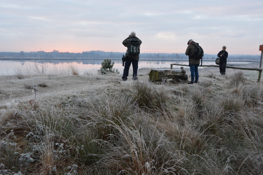 Het zou een zonnige dag worden, die zaterdag de 3e december. Dus een grote kans op een mooie zonsopkomst in het sfeervolle hoogveen van de Enbertsdijkvenen. De club, dit keer bestaande uit 11 fotografen, komt in de vroege donkere winterochtend bijeen op een carpoolplaats even buiten Dedemsvaart. Het is niet alleen donker, maar ook koud. Maar iedereen heeft er zin in. En als de groep compleet is, vlug in de auto op weg naar Kloosterhaar. Na een halfuurtje is de club fotografen, gewapend met camera, statief, een tas met lenzen en niet te vergeten een thermoskan met koffie, klaar om de wildernis van Engbertsdijksvenen in te gaan.
