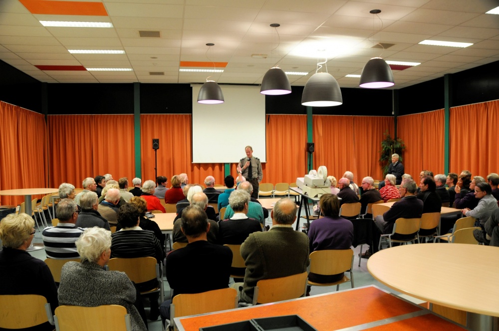 Maar liefst 58 belangstellenden kwamen op donderdag 21 januari naar onze tweede dialezing van dit winterseizoen. En ze werden niet teleurgesteld! Jachtopzichter Jan Huttinga uit het Veluwse Gortel verbaasde de zaal met een prachtige diapresentatie over de Kroondomeinen van Het Loo. Huttinga maakt prachtige foto’s over de dieren- en plantenwere