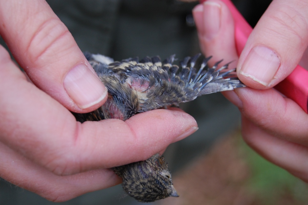 Teruggevangen: wanneer een volwassen vogel in een nestkast wordt aangetroffen en geringd blijkt, kunnen we het ringnummer aflezen.
