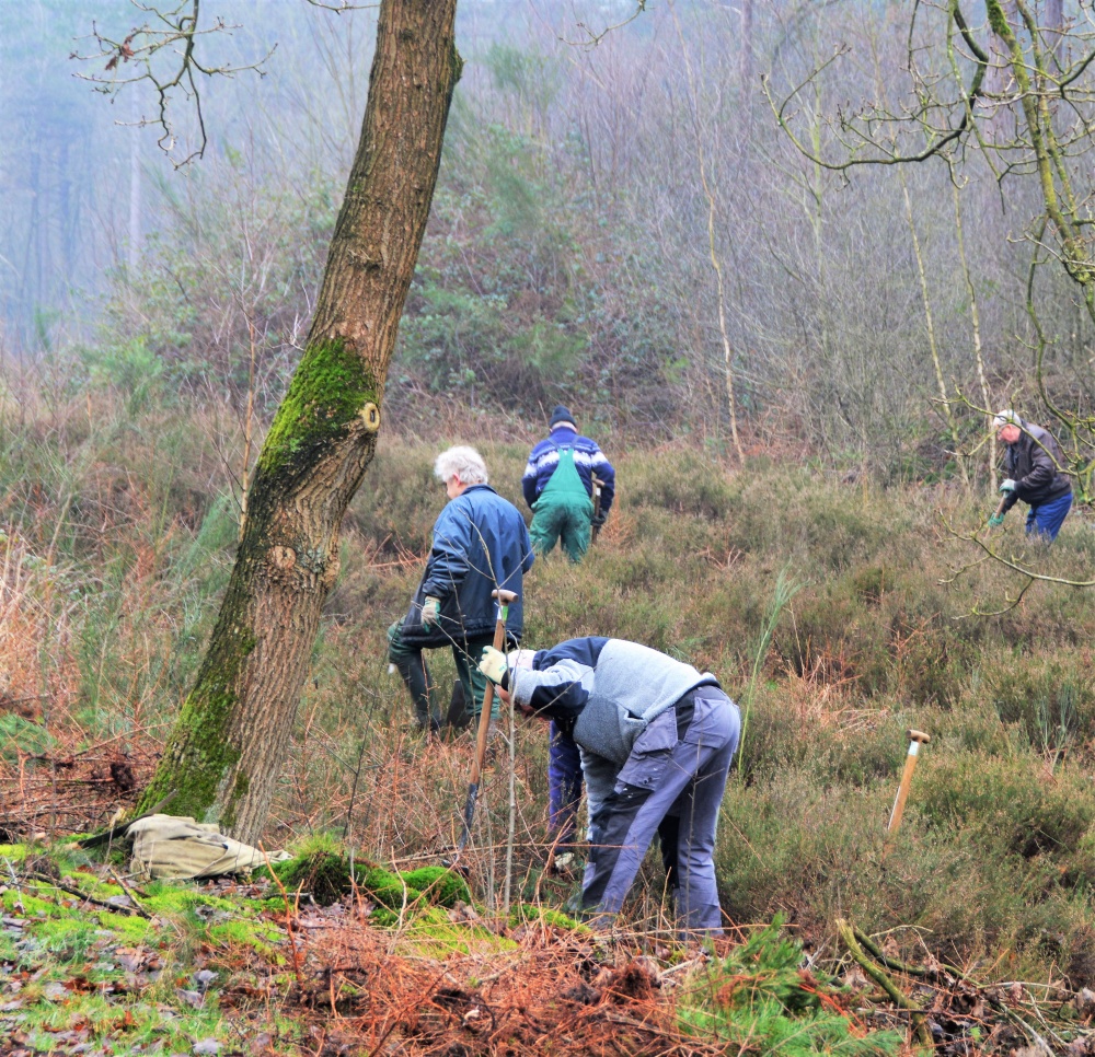 Drie keer is de werkgroep landschapsbeheer nu een zaterdagmorgen actief geweest in de Vipera Verbindt -strook in de boswachterij Staphorst. Inmiddels is zo’n 250 meter geschoond van opslag van dennetjes en lariks. In het vroege voorjaar knippen we nog de berken bij de grond af. De kans dat een berk dan niet meer terugkomt is groot. Juist